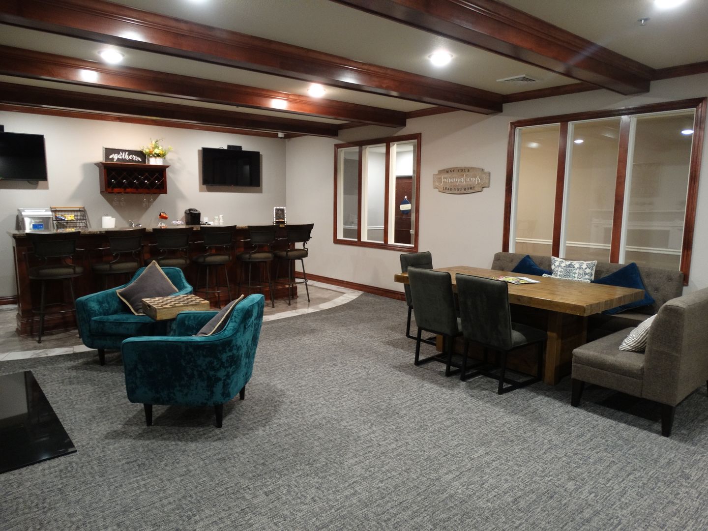 Get rid of your gym membership and work out in our fitness center. Take in a movie or watch the game with friends at our theatre which has 18 seats. Or simply spend time together conversing in our lounge or community room. Your pets are warmly welcomed and you can pamper them at our top of the line dog washing stations. At our outdoor community patio enjoy cooking, entertaining, and spending time kicked back by the fire while overlooking a nature preserve right in your own backyard.